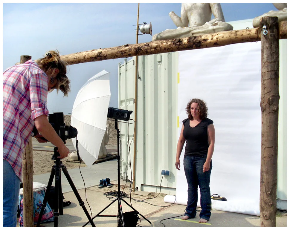 I put up a white background role and asked the women lying on the beach around me to pose for me.